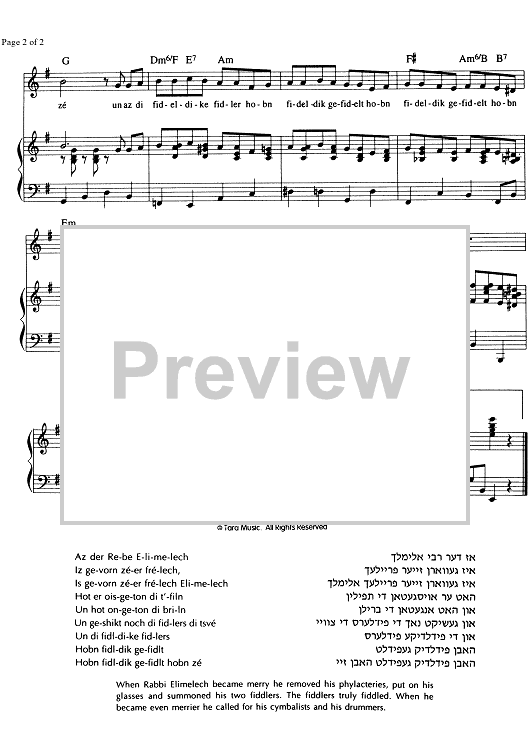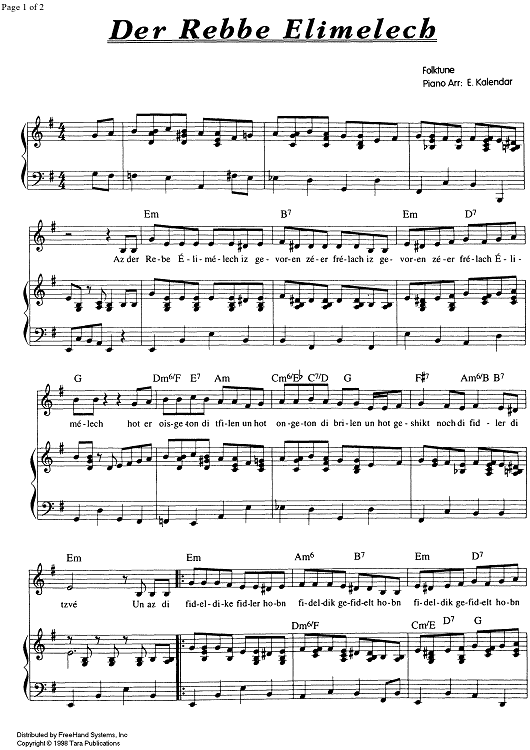 "Der Rebbe Elimelech" Sheet Music by Traditional