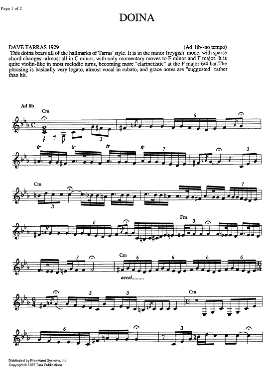 Digital Sheet Music for Doina by , Traditional scored for Any Klezmer instrumentation; id:337971
