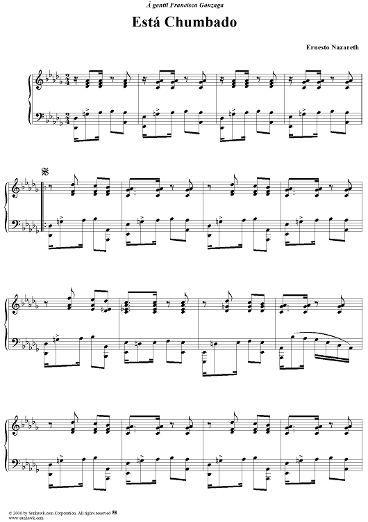 Digital Sheet Music for Está Chumbado by Ernesto Nazareth scored for Piano Solo; id:240861