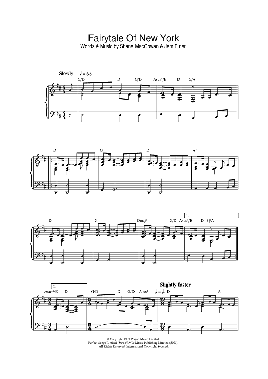 Digital Sheet Music for Fairytale Of New York by Shane MacGowan, Jem Finer, The Pogues, Kirsty MacColl scored for Piano; id:385372