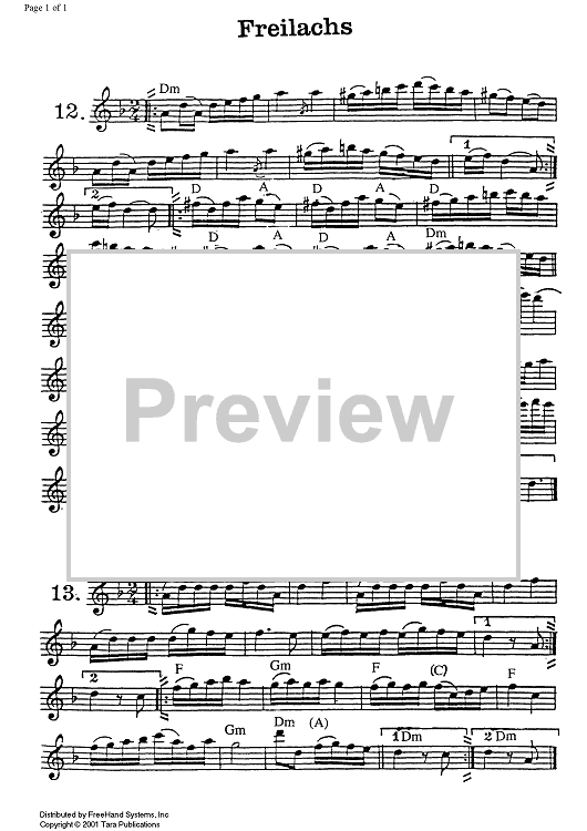 "Freilachs No.12 & 13" Sheet Music by Traditional