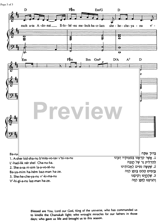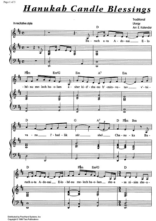 Digital Sheet Music for Hanukah Candle Blessings by , Edward Kalendar, Traditional scored for Voice/Piano; id:343822