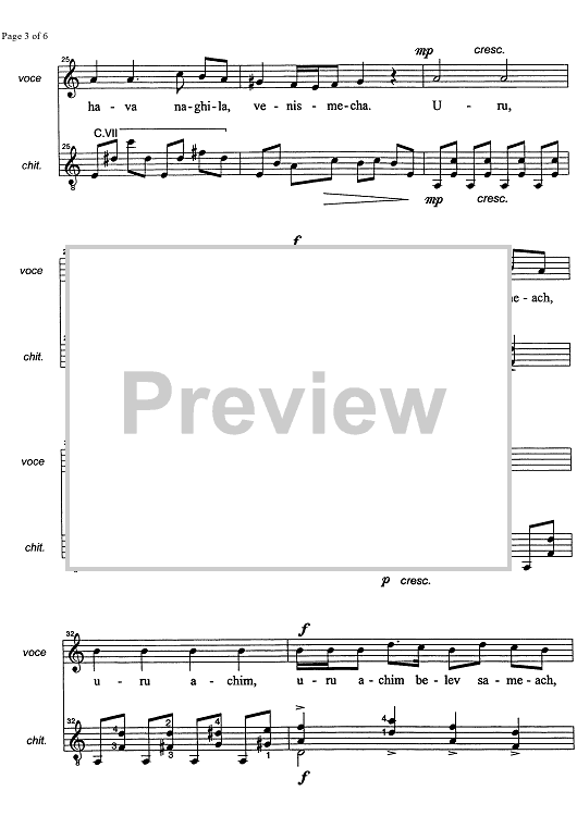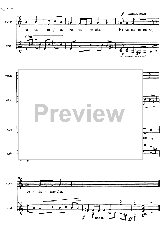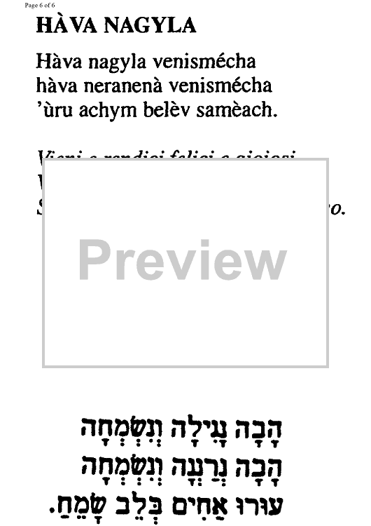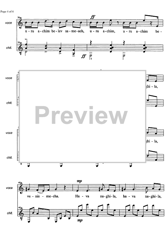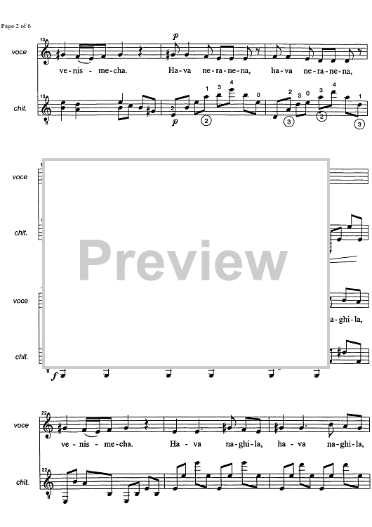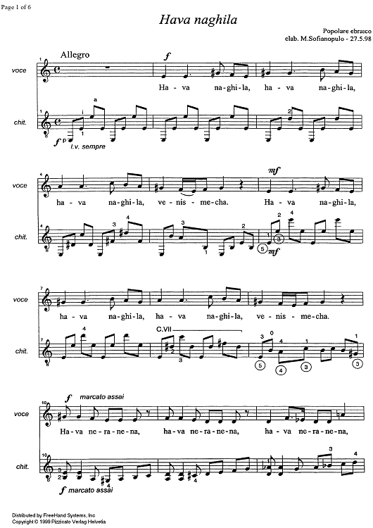 Digital Sheet Music for Hava Nagila by , Marco Sofianopulo, Traditional scored for Voice/Guitar; id:326543