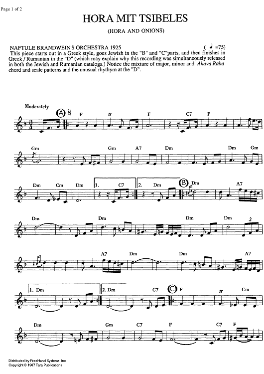 "Hora mit tsibeles (Hora and Onions)" Sheet Music by Traditional