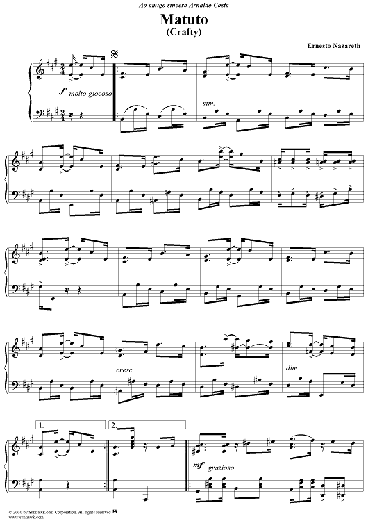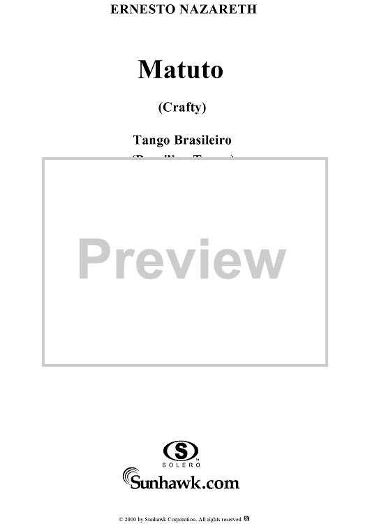 Digital Sheet Music for Matuto by Ernesto Nazareth scored for Piano Solo; id:240860