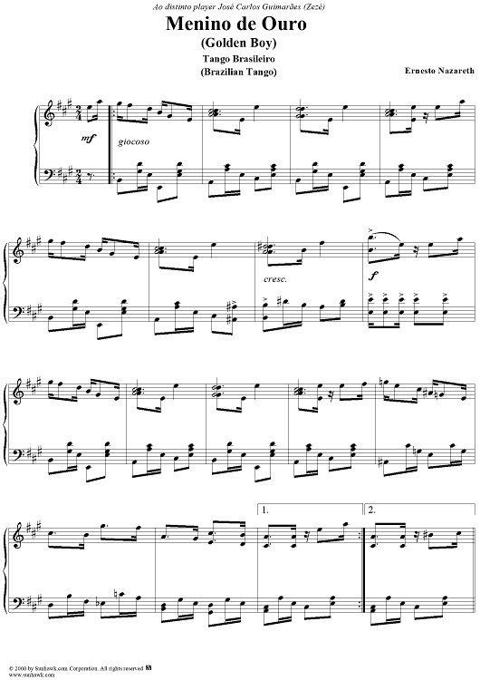 "Menino de Ouro" Sheet Music by Ernesto Nazareth