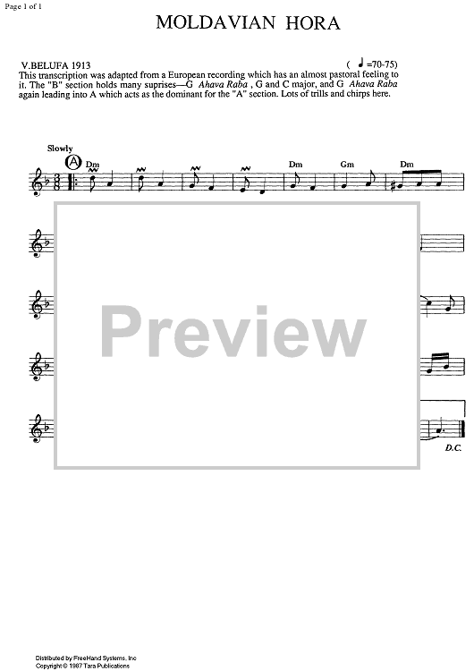 Digital Sheet Music for Moldavian Hora by , Traditional scored for Any Klezmer instrumentation; id:337955