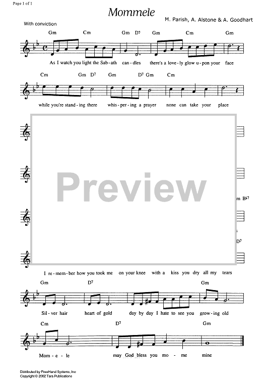 Digital Sheet Music for Mommele by A. Alstone, A. Goodhart, M. Parish, Velvel Pasternak scored for Any Klezmer instrumentation; id:343939