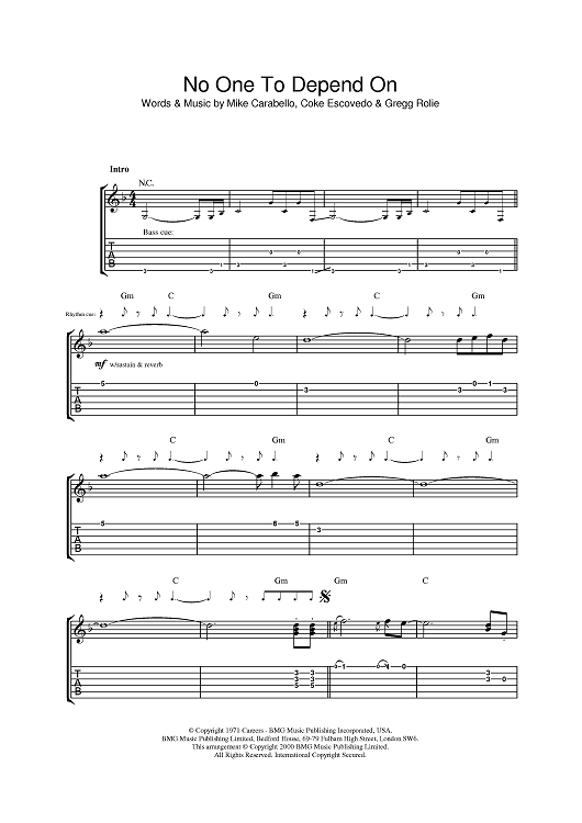 Digital Sheet Music for No One To Depend On by Gregg Rolie, Michael Carabello, Santana, Coke Escovedo scored for Guitar Tab; id:384167