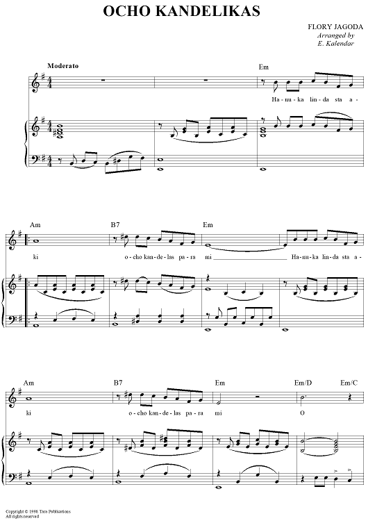 Digital Sheet Music for Ocho Kandelikas by Flory Jagoda, Edward Kalendar scored for Voice/Piano; id:343799