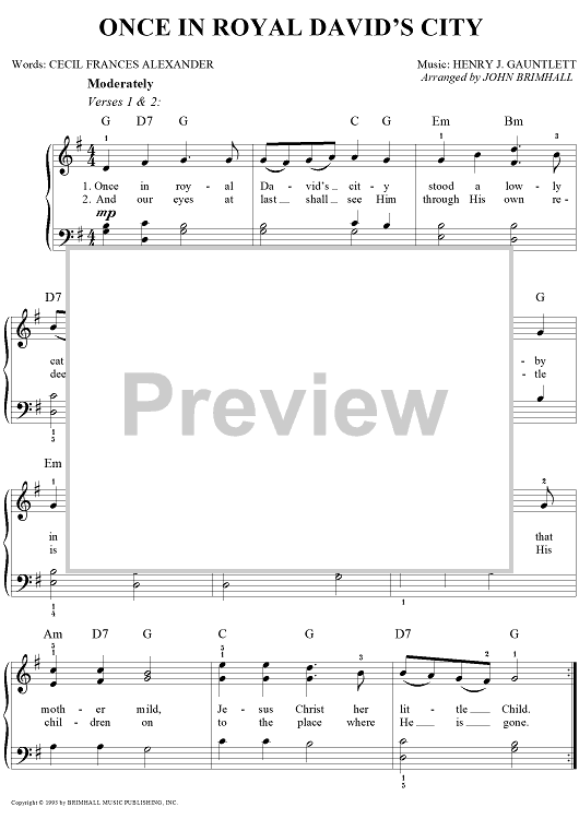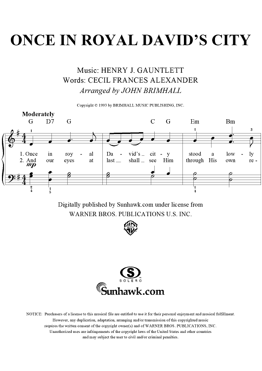 Digital Sheet Music for Once in Royal David's City by Cecil F. Alexander, John Brimhall, Henry J. Gauntlett scored for Easy Piano/Vocal; id:268971