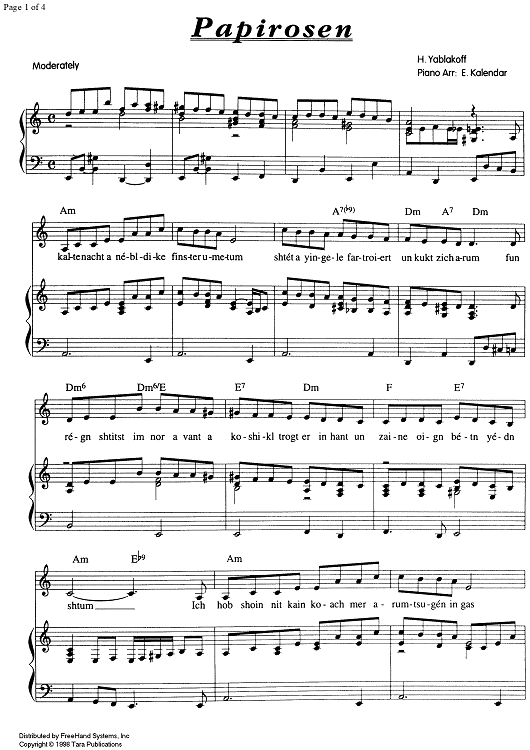 Digital Sheet Music for Papirosen by Edward Kalendar, H. Yablakoff scored for Voice/Piano; id:343790