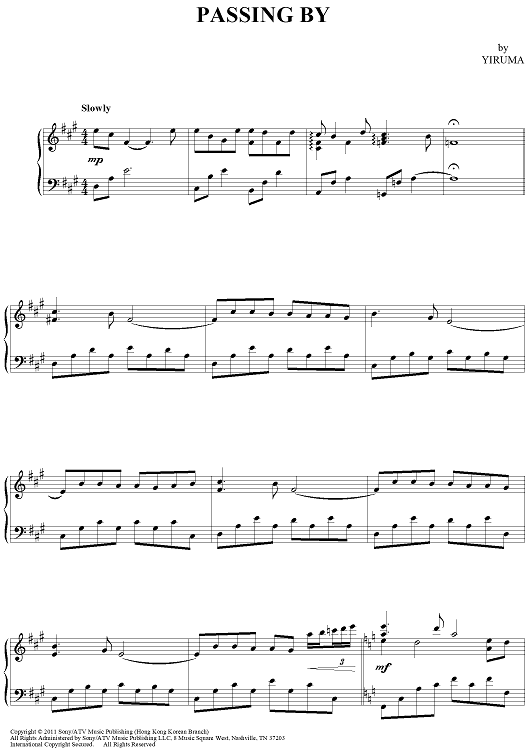 Digital Sheet Music for Passing By by Yiruma scored for Piano Solo; id:443432
