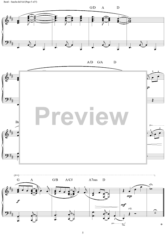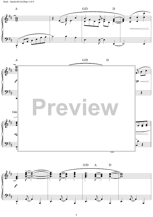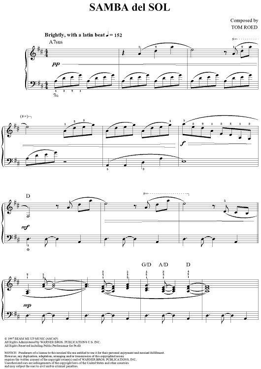 Digital Sheet Music for Samba del Sol by Tom Roed scored for Piano Solo; id:255924