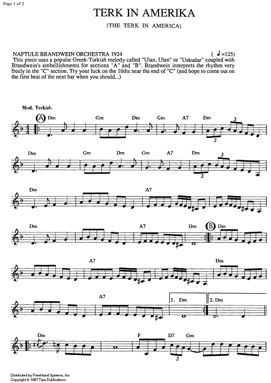 Digital Sheet Music for Terk in Amerika (The Terk in America) by , Traditional scored for Any Klezmer instrumentation; id:337957
