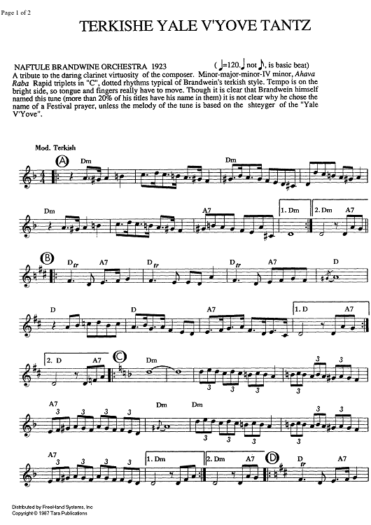 Digital Sheet Music for Terkishe yale v'yove tantz by , Traditional scored for Any Klezmer instrumentation; id:337958