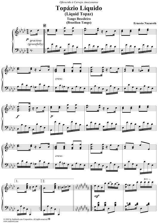 Digital Sheet Music for Topázio Líquido by Ernesto Nazareth scored for Piano Solo; id:240952
