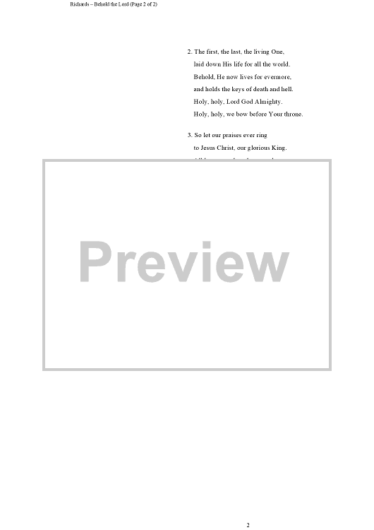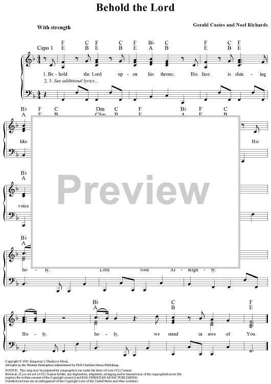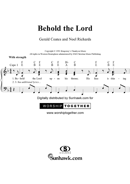 Digital Sheet Music for Behold the Lord by Noel Richards, Gerald Coates scored for Piano/Vocal/Chords; id:191627