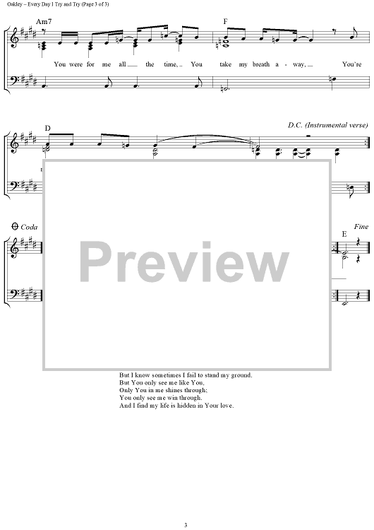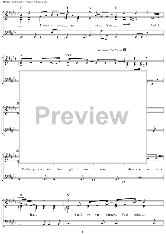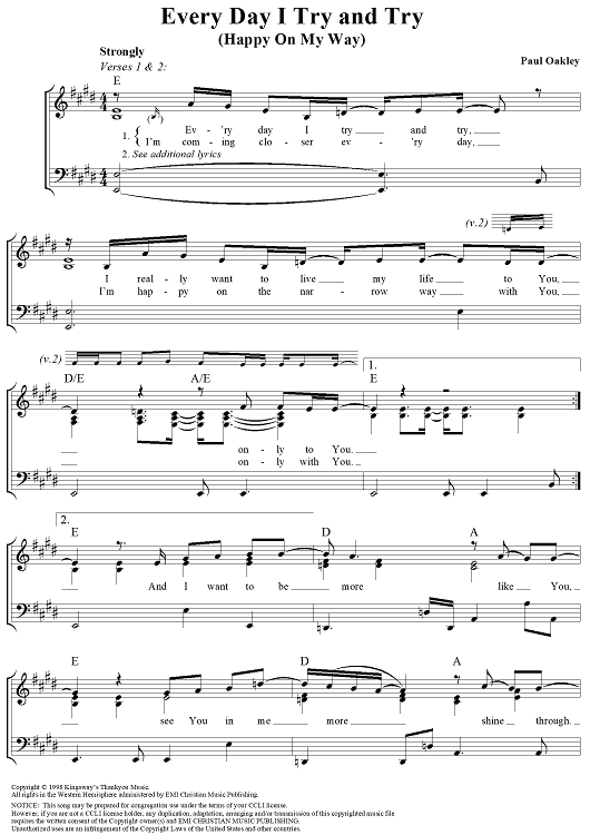 Digital Sheet Music for Every Day I Try and Try (Happy On My Way) by Paul Oakley scored for Piano/Vocal/Chords; id:204391
