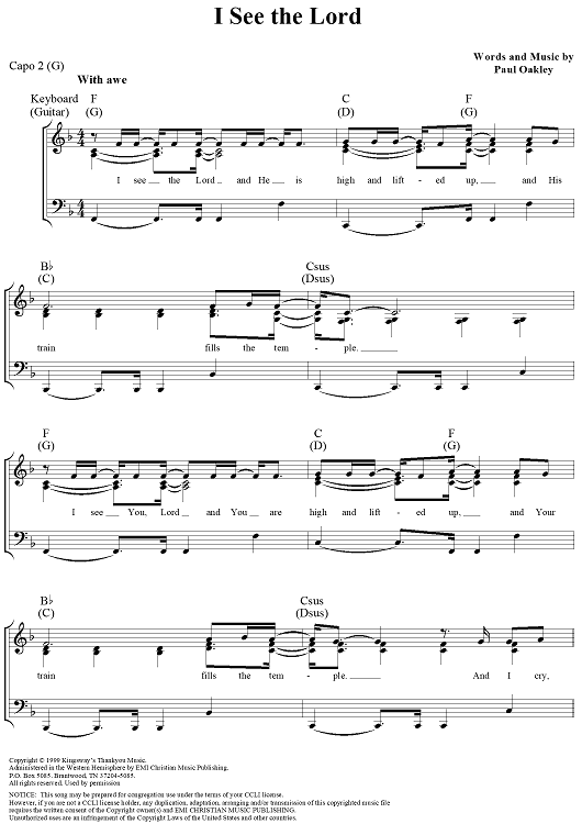 Digital Sheet Music for I See the Lord by Paul Oakley scored for Piano/Vocal/Chords; id:283116