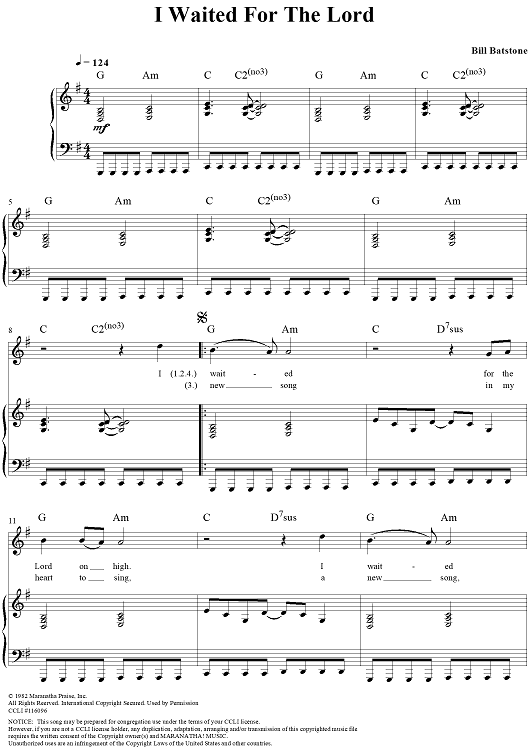"I Waited For The Lord" Sheet Music by Bill Batstone