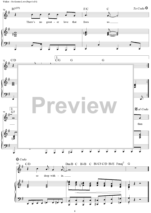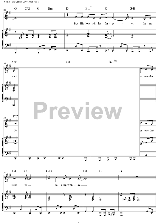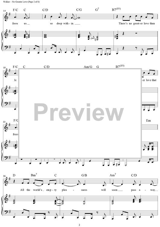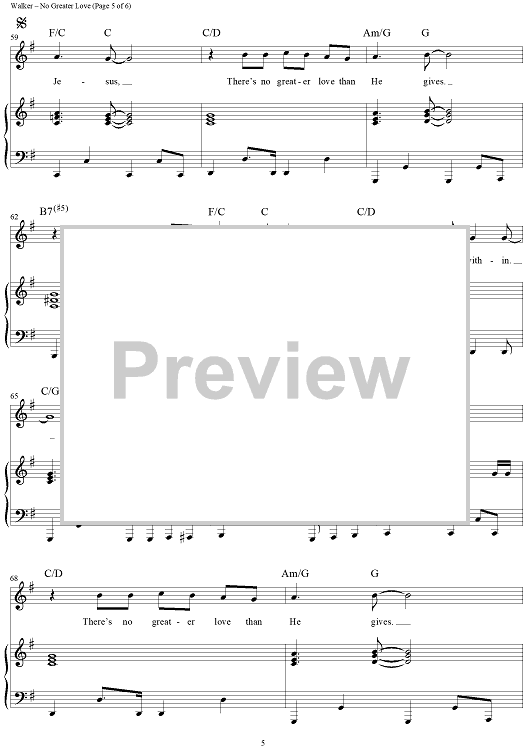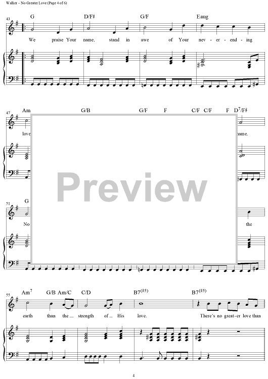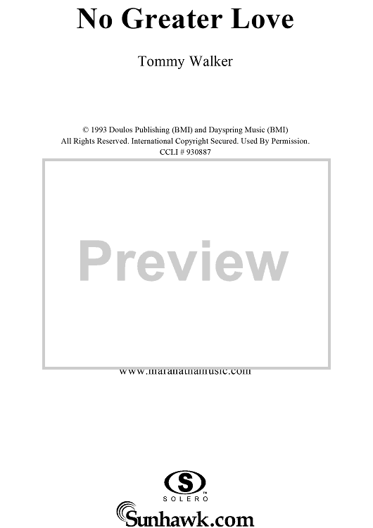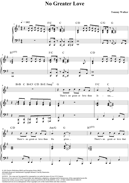 Digital Sheet Music for No Greater Love by Tommy Walker scored for Piano/Vocal/Chords; id:220591