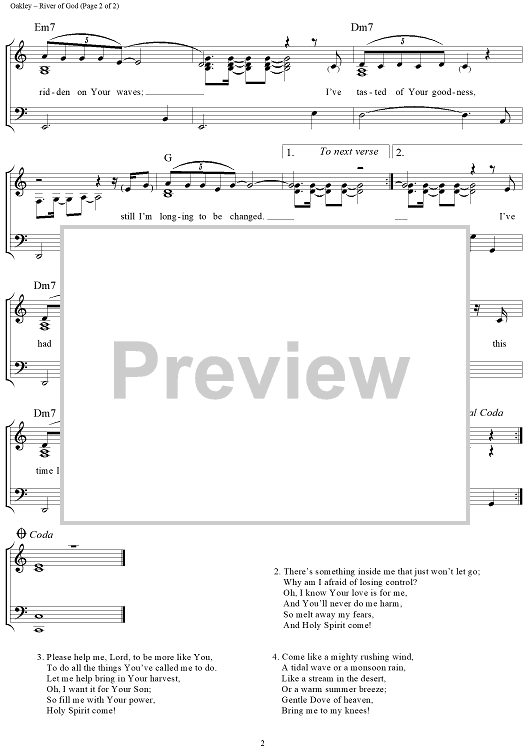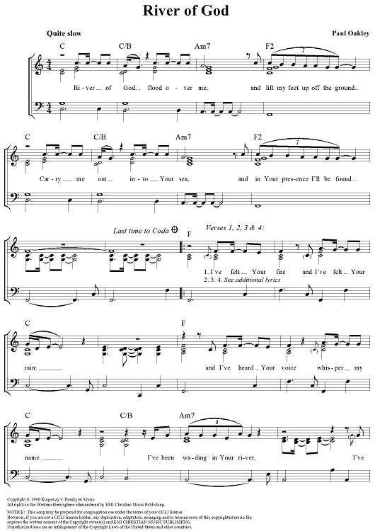 Digital Sheet Music for River of God by Paul Oakley scored for Piano/Vocal/Chords; id:191621