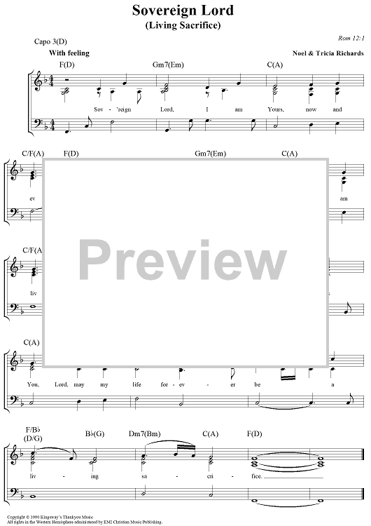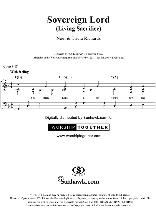 Digital Sheet Music for Sovereign Lord (Living Sacrifice) by Noel Richards, Tricia Richards scored for Piano/Vocal/Chords; id:204416