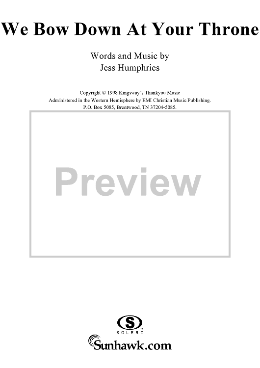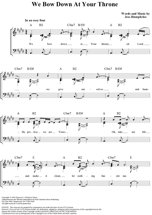 Digital Sheet Music for We Bow Down at Your Throne by Jess Humphries scored for Piano/Vocal/Chords; id:220664