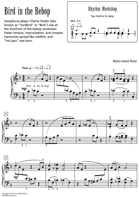 Digital Sheet Music for Bird in the Bebop by Wynn-Anne Rossi scored for Piano; id:469539