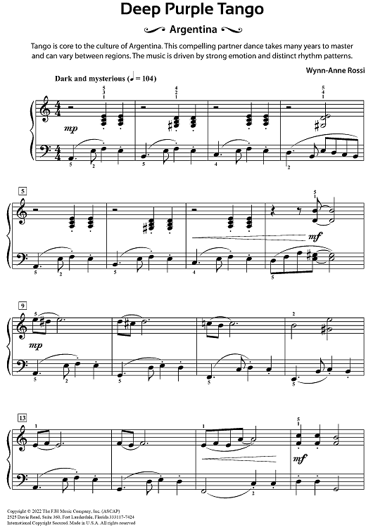 Digital Sheet Music for Deep Purple Tango (Argentina) by Wynn-Anne Rossi scored for Piano Solo; id:500495