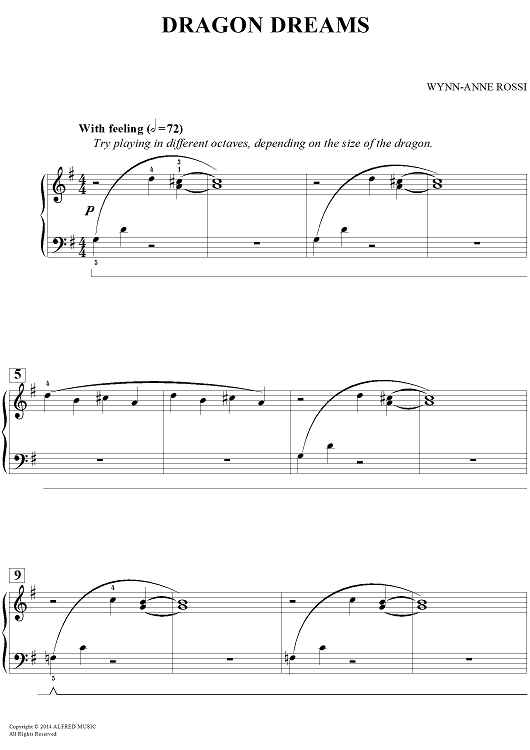 Digital Sheet Music for Dragon Dreams by Wynn-Anne Rossi scored for Easy Piano; id:449504