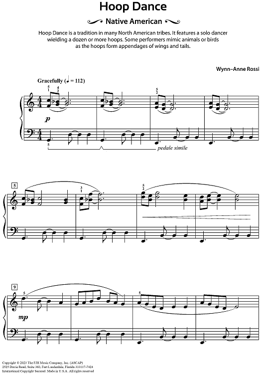Digital Sheet Music for Hoop Dance by Wynn-Anne Rossi scored for Piano Solo; id:500481