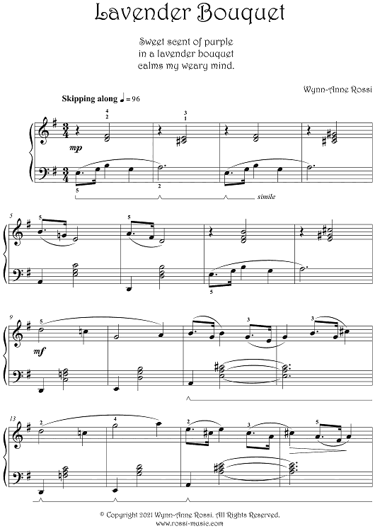 "Lavender Bouquet" Sheet Music by Wynn-Anne Rossi