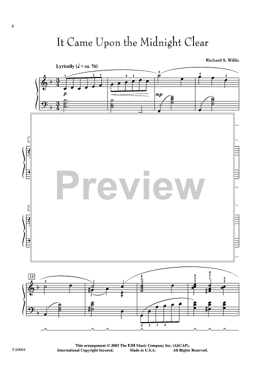 Both late intermediate students and more advanced pianists will enjoy playing these three Christmas nocturnes for recitals, holiday get-togethers, and church services. These artistic arrangements contain harmonies that are not always predictable, but yet are interesting and musically pleasing to both the pianist and the audience.
