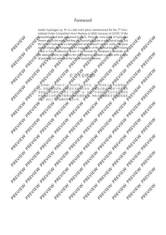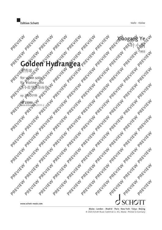 Digital Sheet Music for Golden Hydrangea by Xiaogang Ye scored for Violin; id:501232