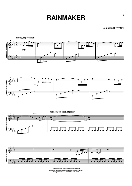 Digital Sheet Music for Rainmaker by Yanni scored for Piano; id:387432