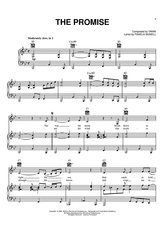 Digital Sheet Music for The Promise by Pamela McNeill, Yanni scored for Piano/Vocal/Chords; id:387407