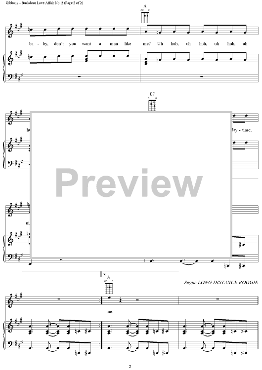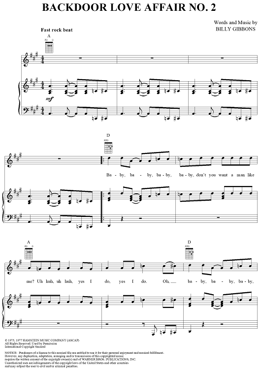 Digital Sheet Music for Backdoor Love Affair No. 2 by Billy Gibbons, ZZ Top scored for Piano/Vocal/Chords; id:202255