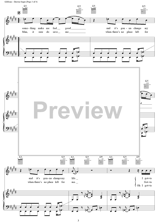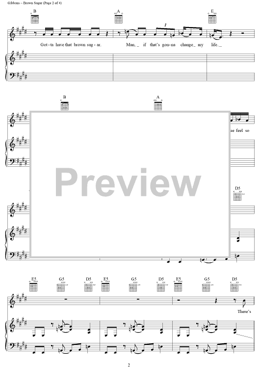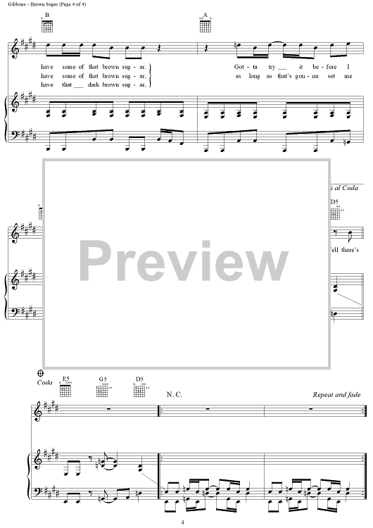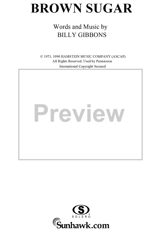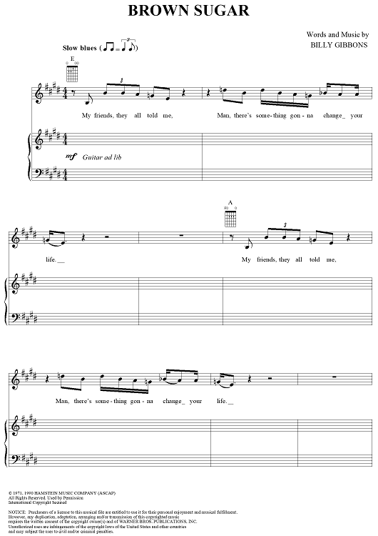 Digital Sheet Music for Brown Sugar by Billy Gibbons, ZZ Top scored for Piano/Vocal/Chords; id:268354