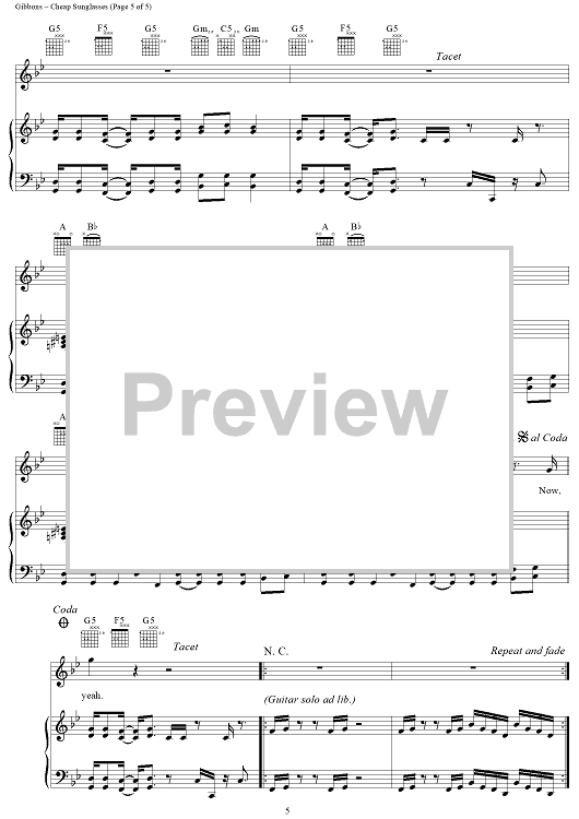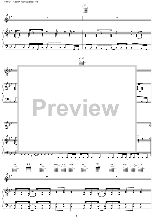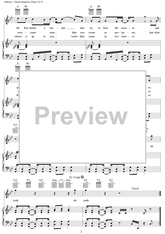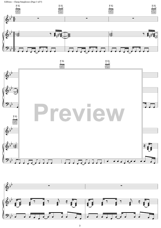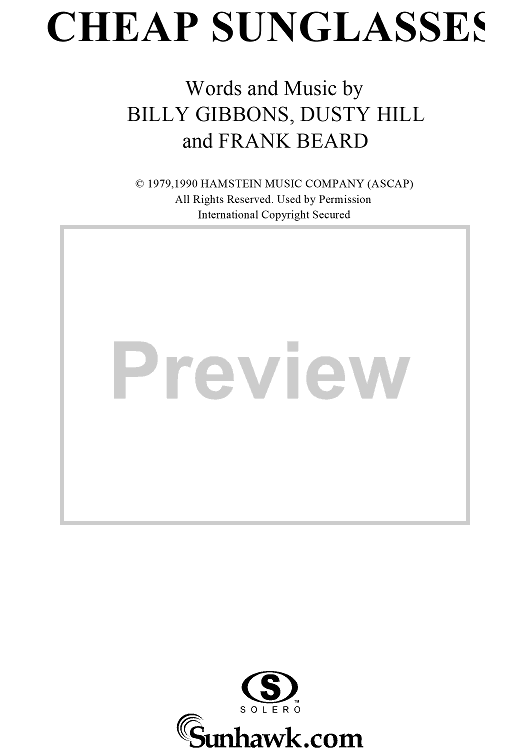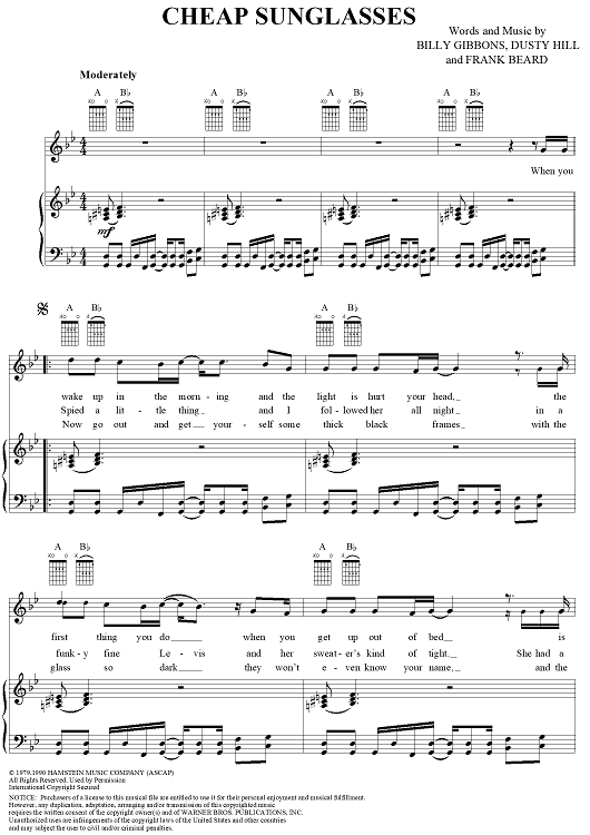 Digital Sheet Music for Cheap Sunglasses by Billy Gibbons, Dusty Hill, Frank Beard, ZZ Top scored for Piano/Vocal/Chords; id:268216