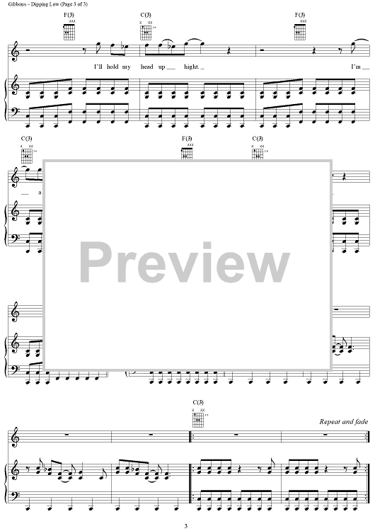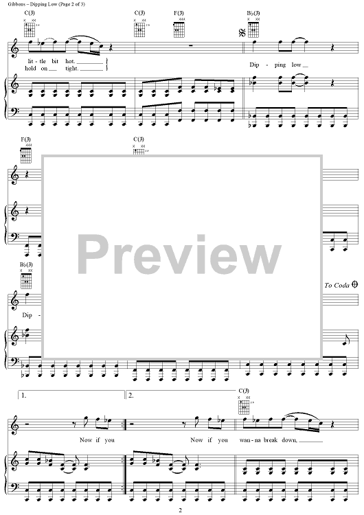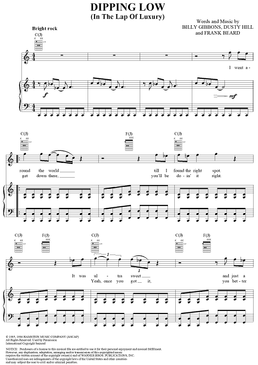 Digital Sheet Music for Dipping Low by Billy Gibbons, Dusty Hill, Frank Beard, ZZ Top scored for Piano/Vocal/Chords; id:268222
