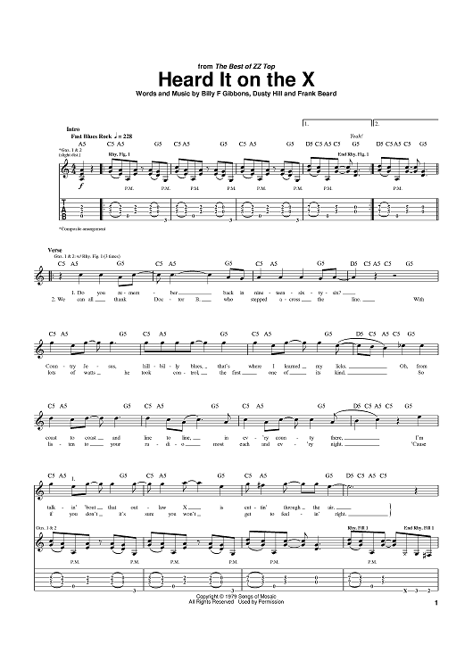 Digital Sheet Music for Heard It On The X by Billy Gibbons, Dusty Hill, Frank Beard, ZZ Top scored for Guitar Tab; id:370731