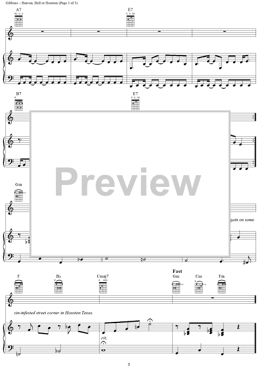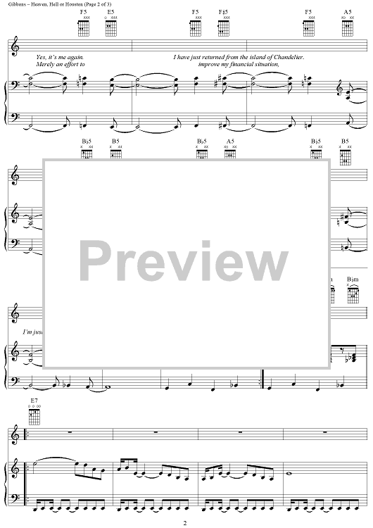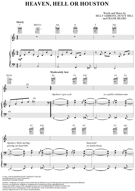 Digital Sheet Music for Heaven, Hell or Houston by Billy Gibbons, Dusty Hill, Frank Beard, ZZ Top scored for Piano/Vocal/Chords; id:268534
