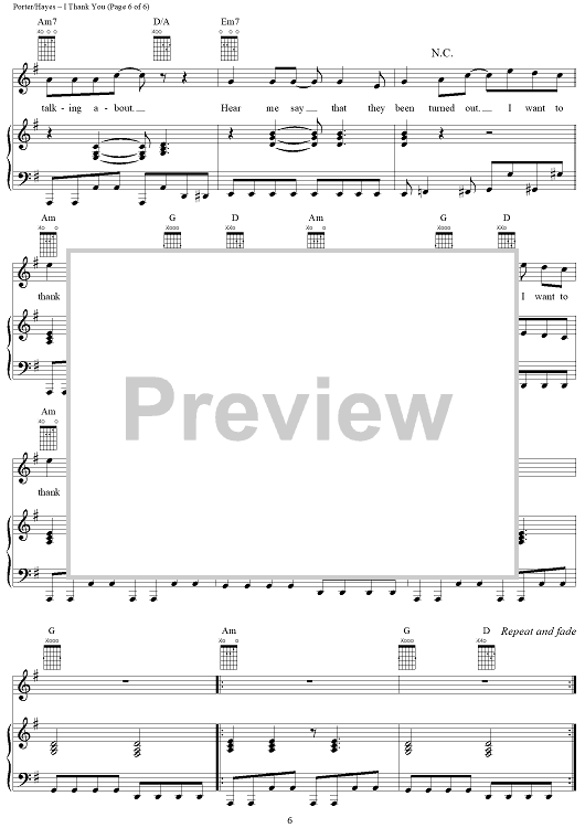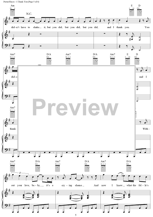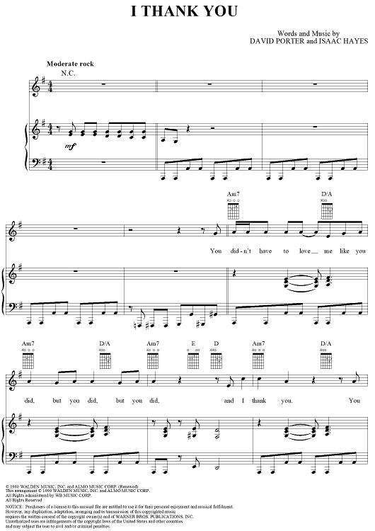 Digital Sheet Music for I Thank You by Isaac Hayes, David Porter, Sam and Dave, Tom Jones, ZZ Top scored for Piano/Vocal/Chords; id:119977