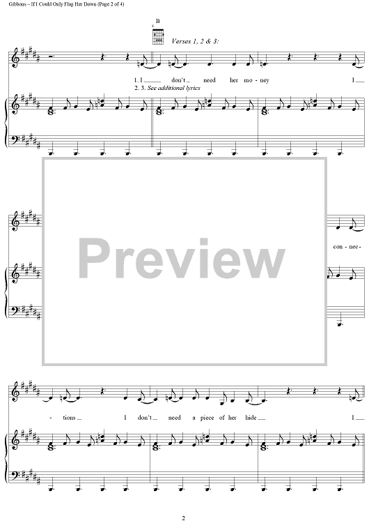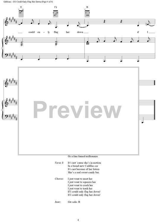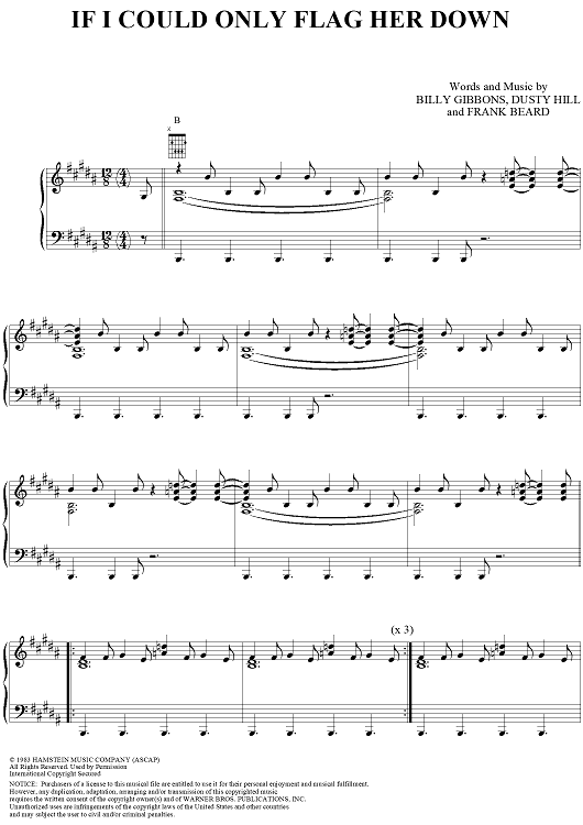 Digital Sheet Music for If I Could Only Flag Her Down by Billy Gibbons, Dusty Hill, Frank Beard, ZZ Top scored for Piano/Vocal/Chords; id:202247