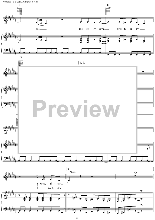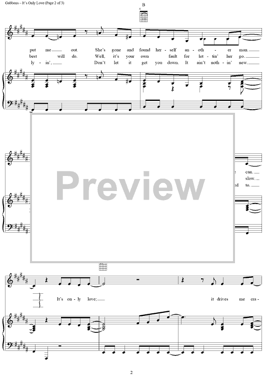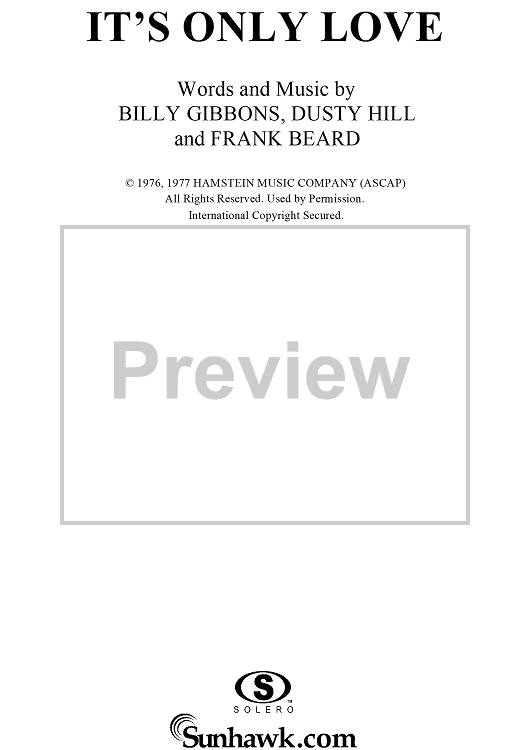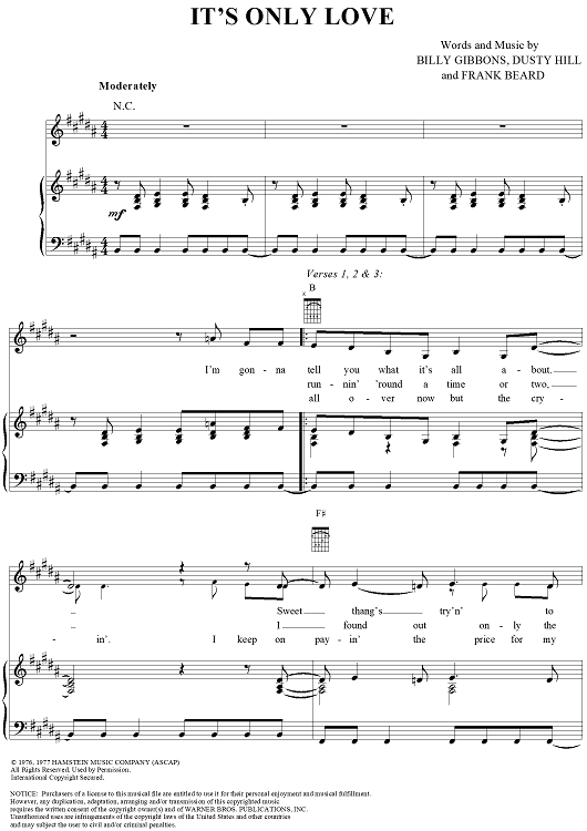 Digital Sheet Music for It's Only Love by Billy Gibbons, Dusty Hill, Frank Beard, ZZ Top scored for Piano/Vocal/Chords; id:119780