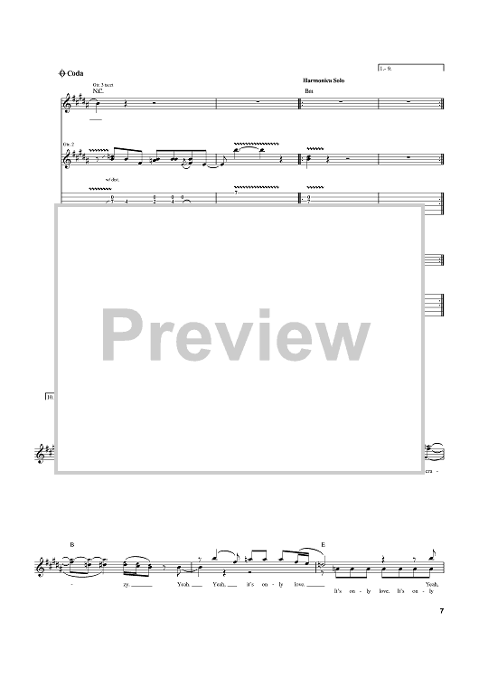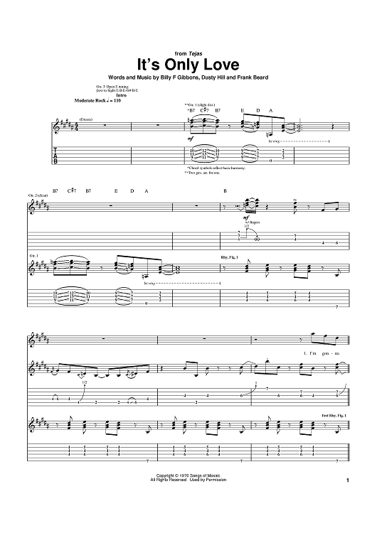 Digital Sheet Music for It's Only Love by Billy Gibbons, Dusty Hill, Frank Beard, ZZ Top scored for Guitar Tab; id:370732