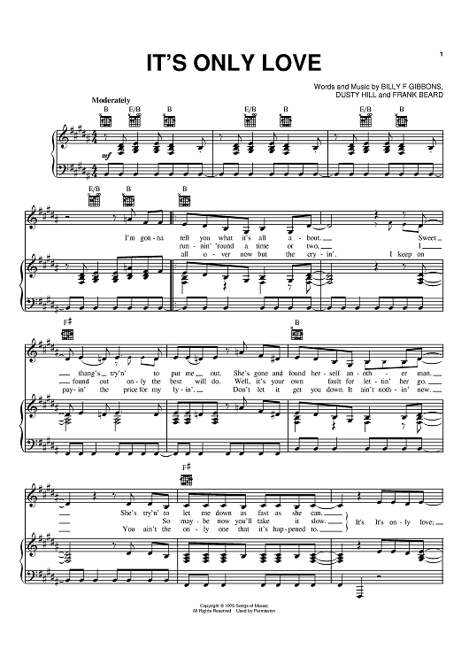 Digital Sheet Music for It's Only Love by Billy Gibbons, Dusty Hill, Frank Beard, ZZ Top scored for Piano/Vocal/Chords; id:371033