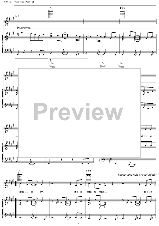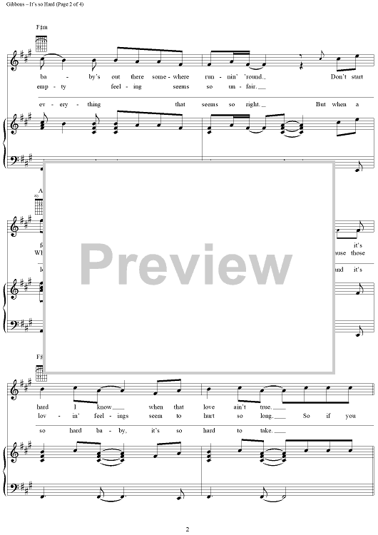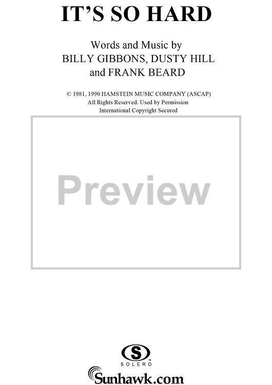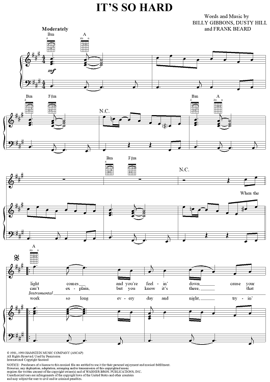 Digital Sheet Music for It's so Hard by Billy Gibbons, Dusty Hill, Frank Beard, ZZ Top scored for Piano/Vocal/Chords; id:268548